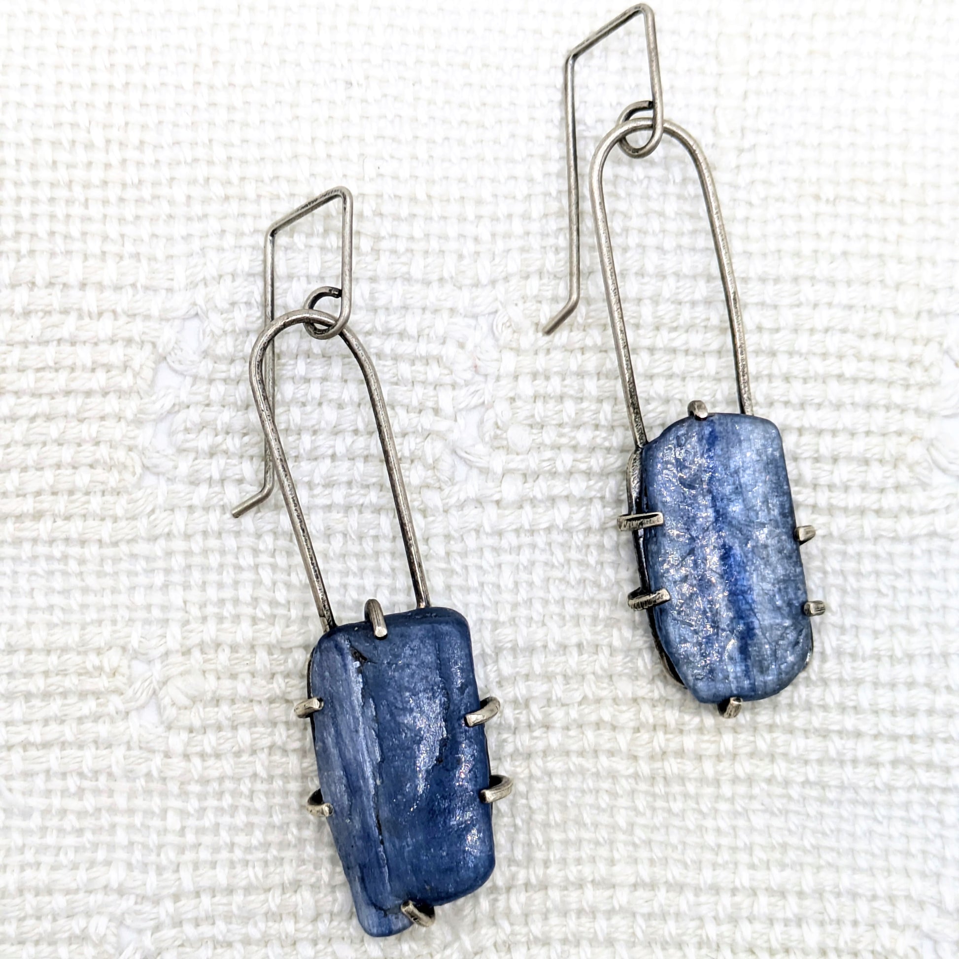 Textured Kyanite stones in sterling silver. Light weight with sterling silver ear wires. Oxidized finish.