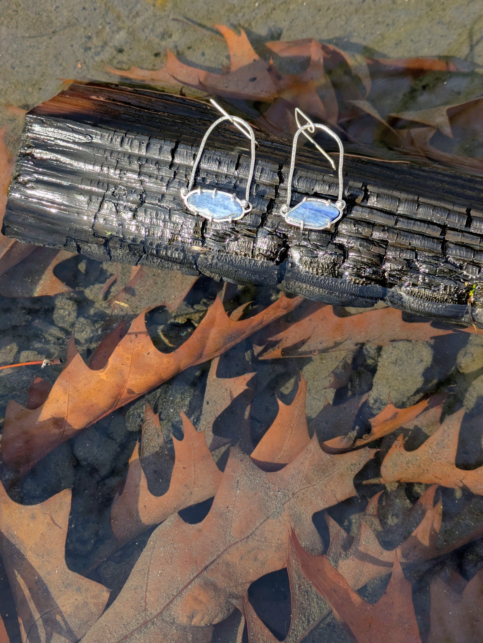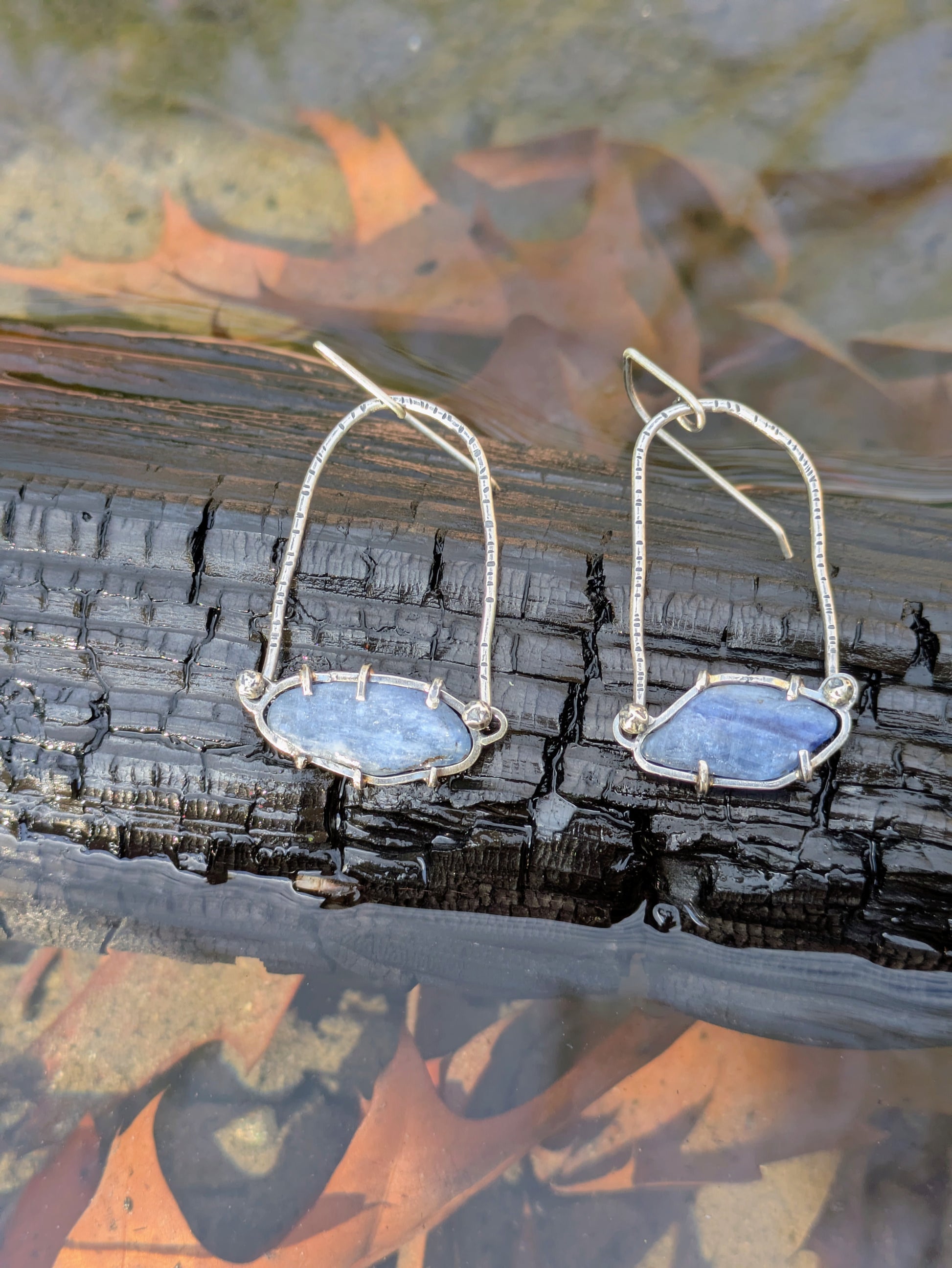 Textured Kyanite stone in hammered sterling silver. Handmade ear wires.