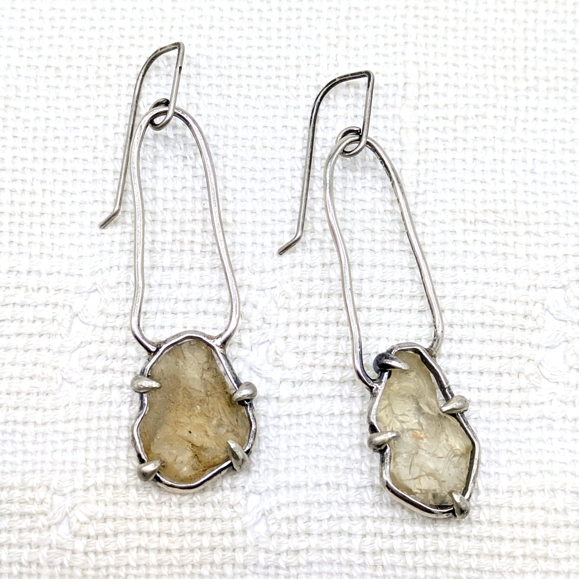Gorgeously rustic sterling silver earrings with Oregon Sunstones.